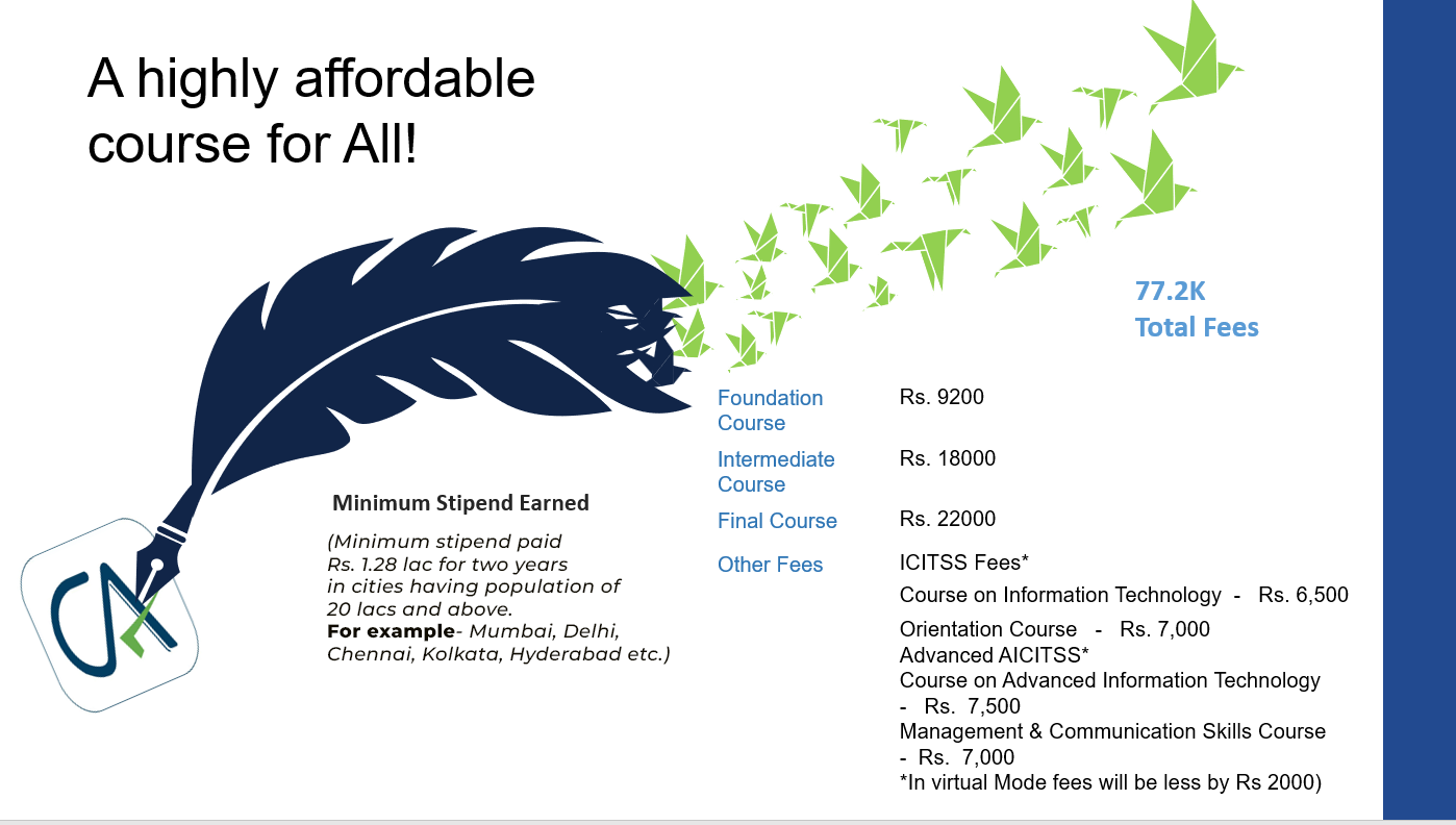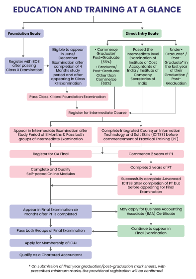 The CA course has three levels main levels which encompasses not just theoretical concepts but also supplemented with rigorous practical training.